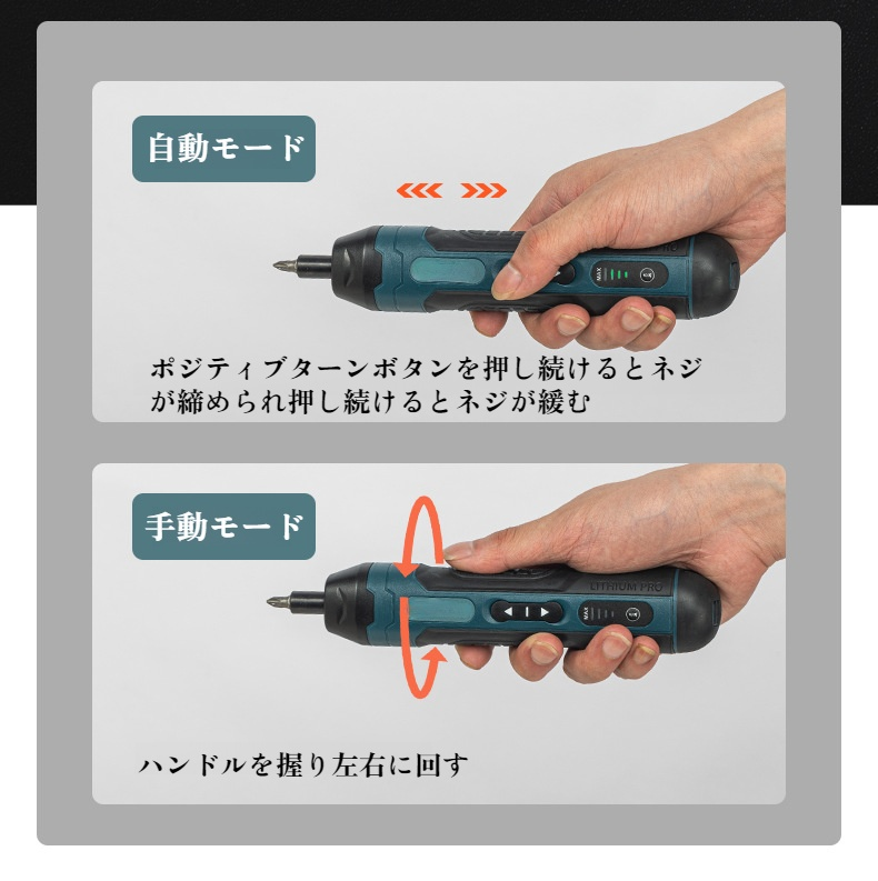 【DIY専用・初心者向け】電動ドライバー 小型 USB充電式 磁気式 プラス/マイナス/四角/六角/星型 電動ドリル コードレス 16点ドライバーセット 延長ロッド付き 手動/トルク3段階/正逆切替ド