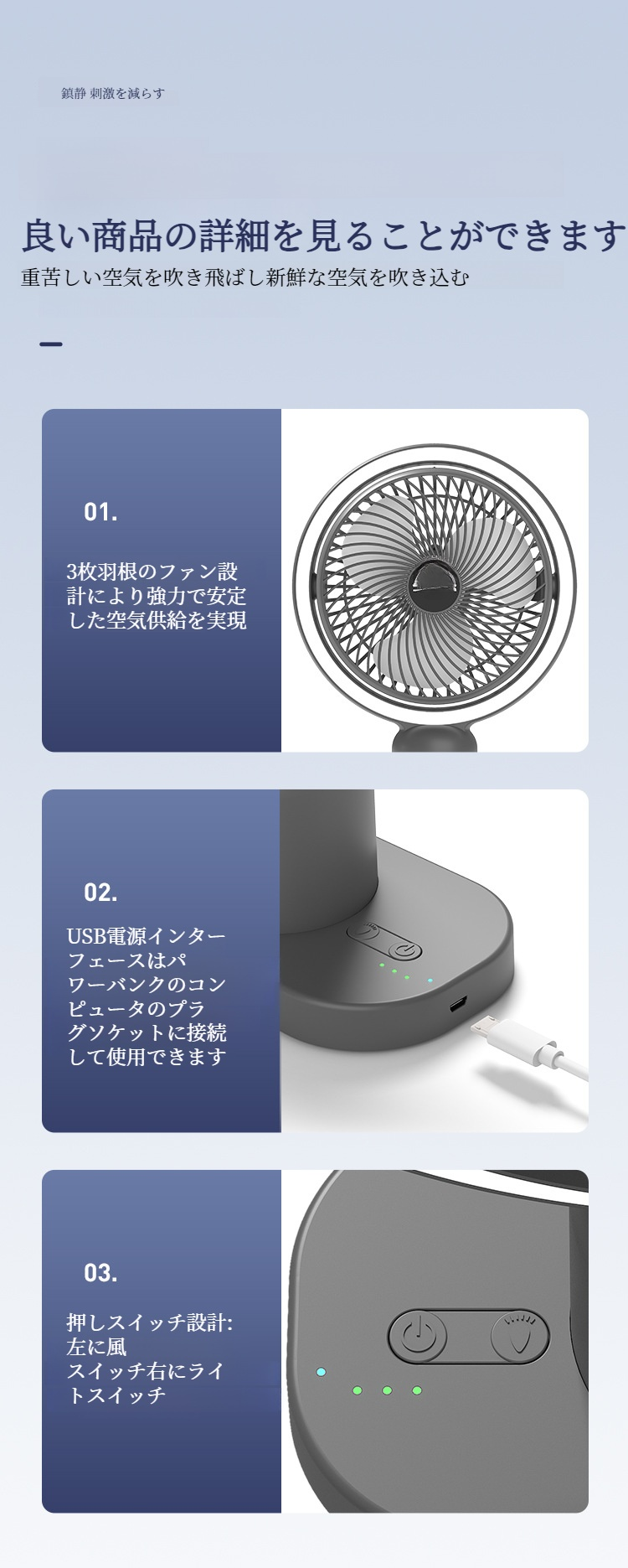 家庭用高風力卓上扇風機 ミニ小型扇風機デスクトップポータブル扇風機 充電式フィルライトファン